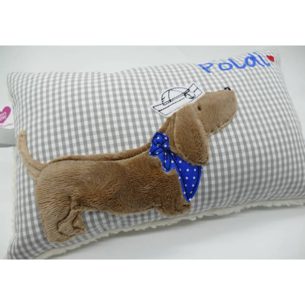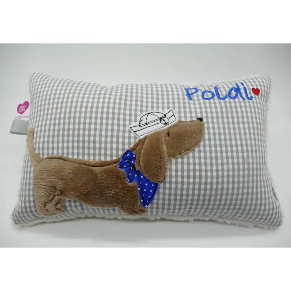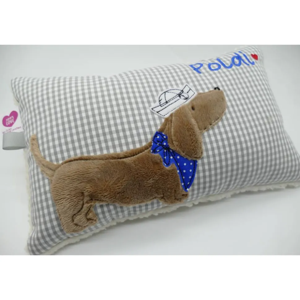 Aufwendig und mit viel Liebe zum Detail genähtes und gesticktes Mini-Kissen