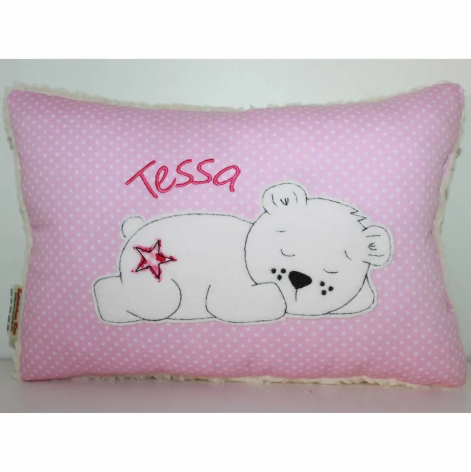 Vorderseite Baumwollstoff und auf der Rückseite Teddystoff.