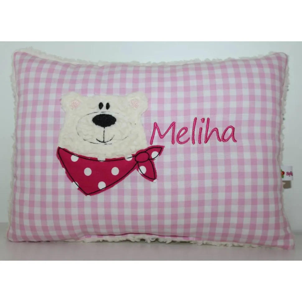 Vorderseite Baumwollstoff, für den Bärchenkopf verwende ich Teddystoff und auf der Rückseite ebenfalls Teddystoff.