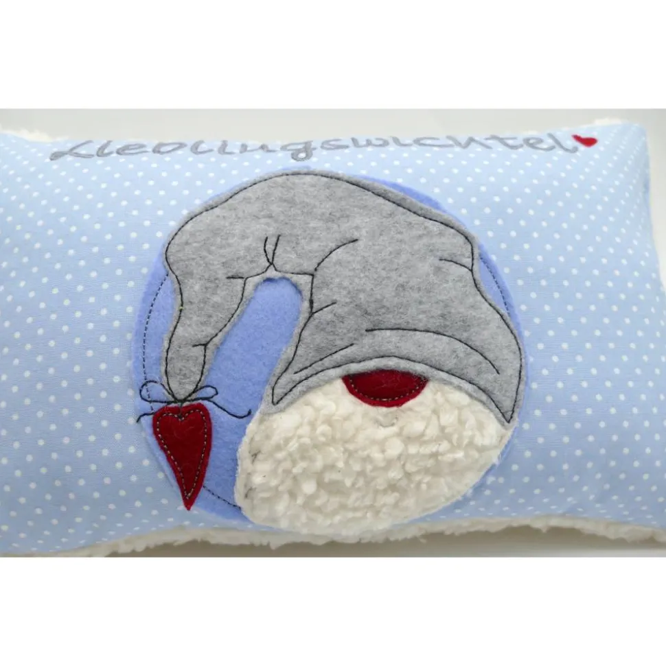 Aufwendig und mit viel Liebe zum Detail genähtes und gesticktes Mini-Kissen