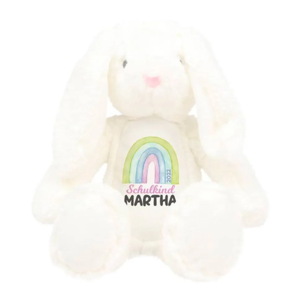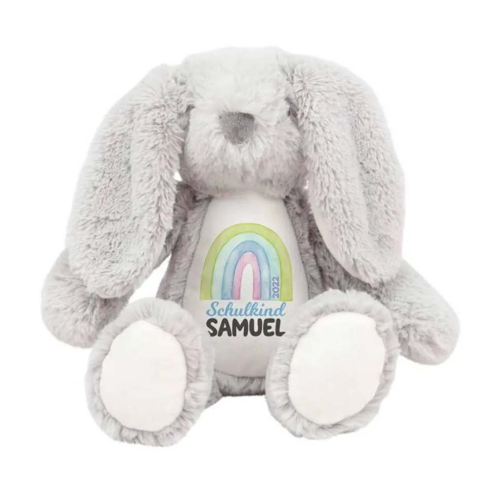 Ein süßes Kuscheltier für die Schultüte zur Einschulung. Aus insgesamt fünf Kuscheltieren kann man seinen kuscheligen Freund zum Schulanfang auswählen. Löwe, Hase, Teddy, Eule oder Katze können mit dem Namen des Jungen oder des Mädchens („Schulkind Name“) und dem Jahr der Einschulung personalisiert werden. Jedes Kuscheltier hat seinen eigenes Motiv und der Name kann wahlweise in blau oder rosa personalisiert werden.