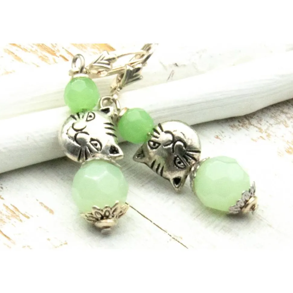 Wunderschöne Ohrhänger mit Katzenanhängern, in grün!