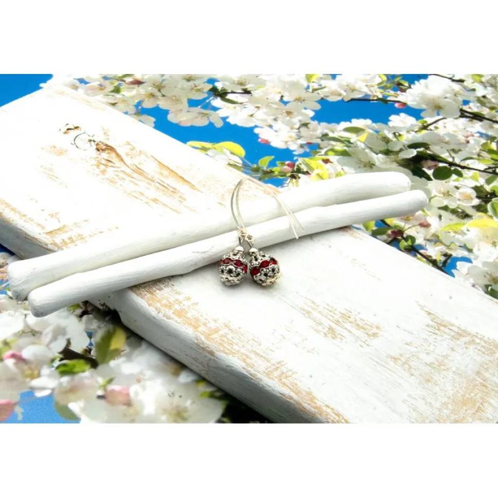 Diese langen, leichten Ohrhänger sind mit Metallanhängern, Silber und Glas in Rot und Silberfarben gefertigt. Die Länge der Ohrhänger beträgt ca.: 5,4 cm, das Gewicht pro Ohrhänger ca.: 1,5 Gramm.