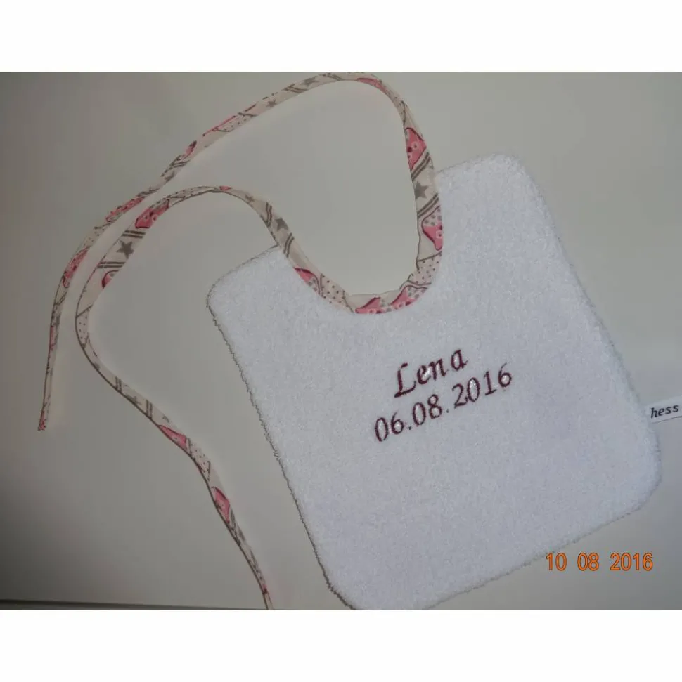 Qualitativ hochwertig verarbeitet-eine Seite dickes Frottee, eine Seite Baumwolle; mit dieser wird auch der Schrägstreifen genäht, mit dem der Halsausschnitt eingefasst wird-Farbe nach Wunsch.