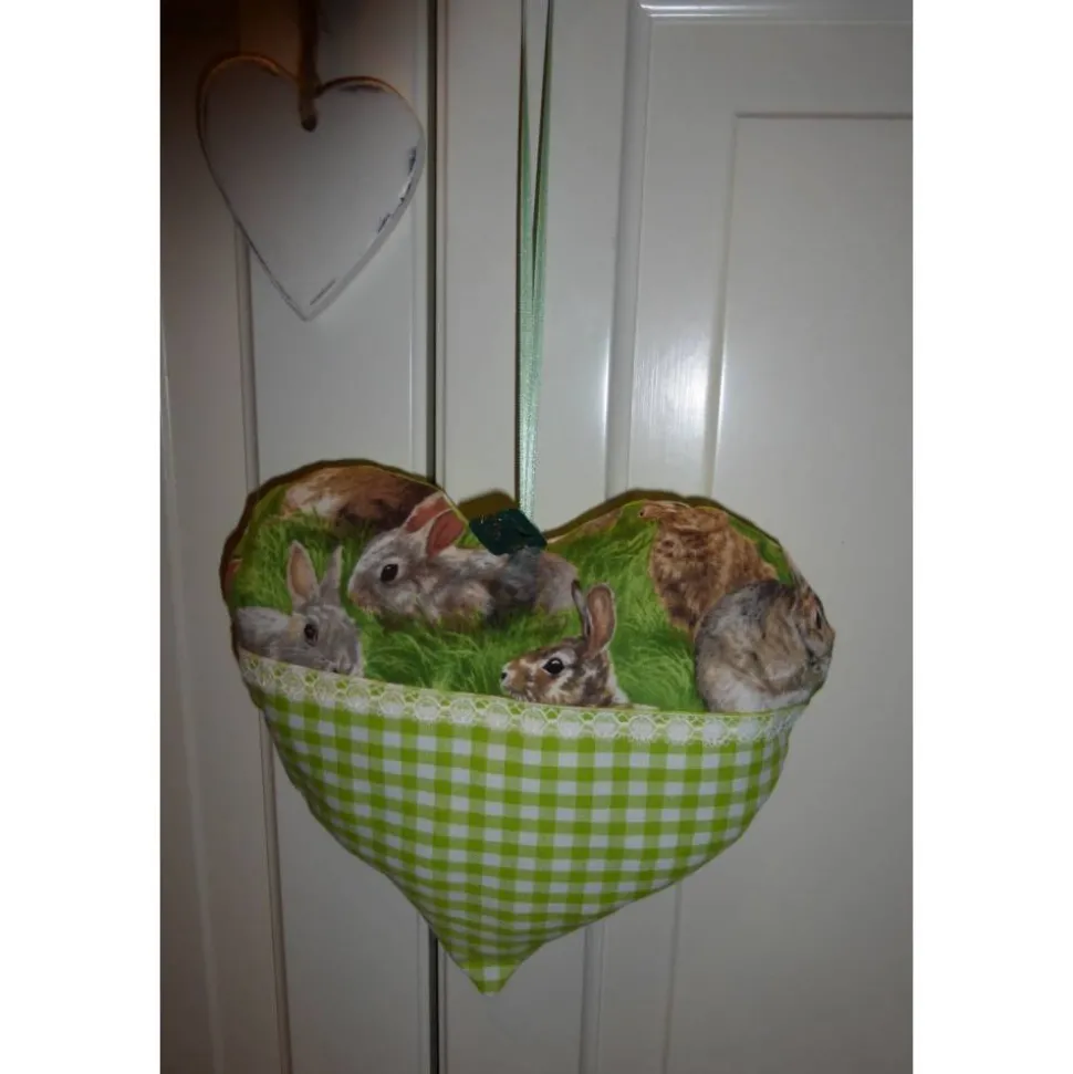 Das Herz wurde mit weißer Baumwollspitze verziert.