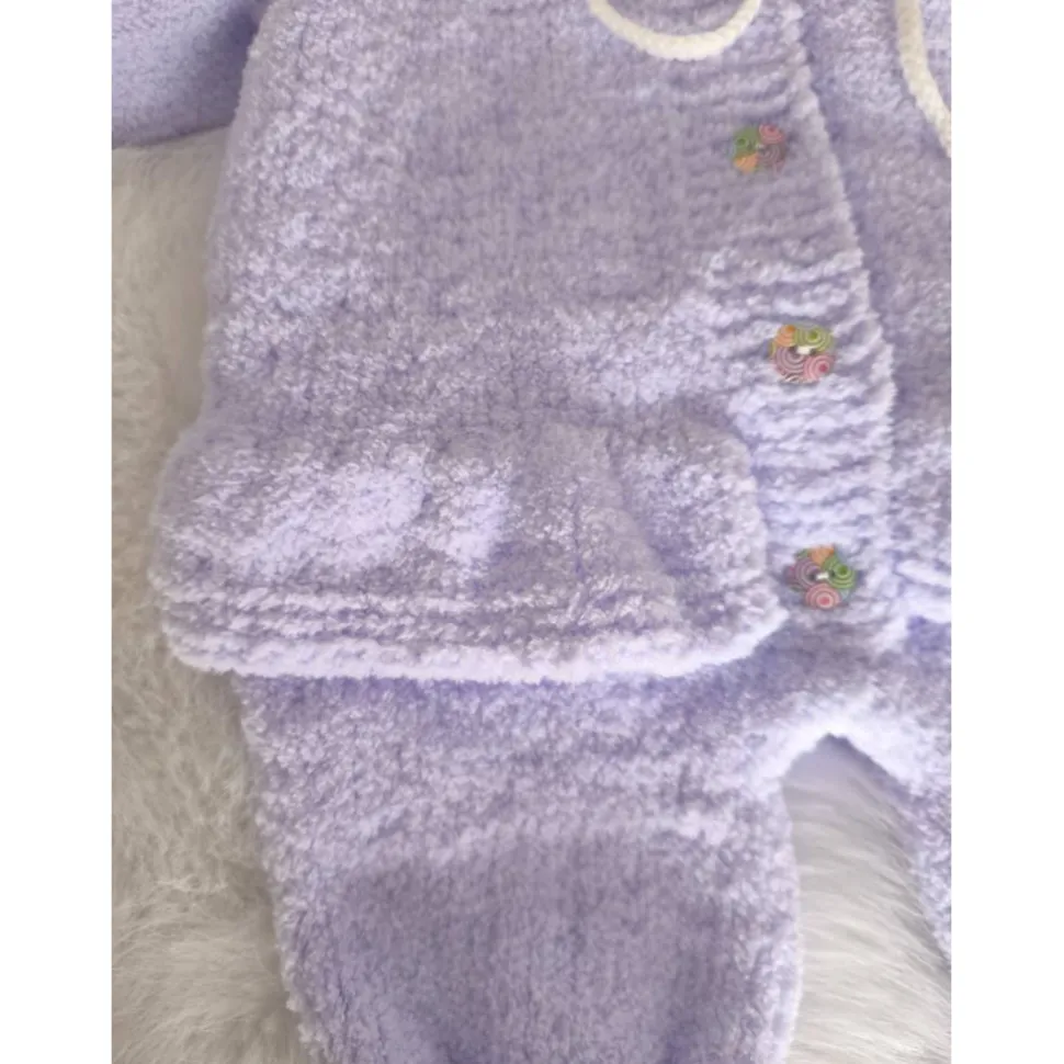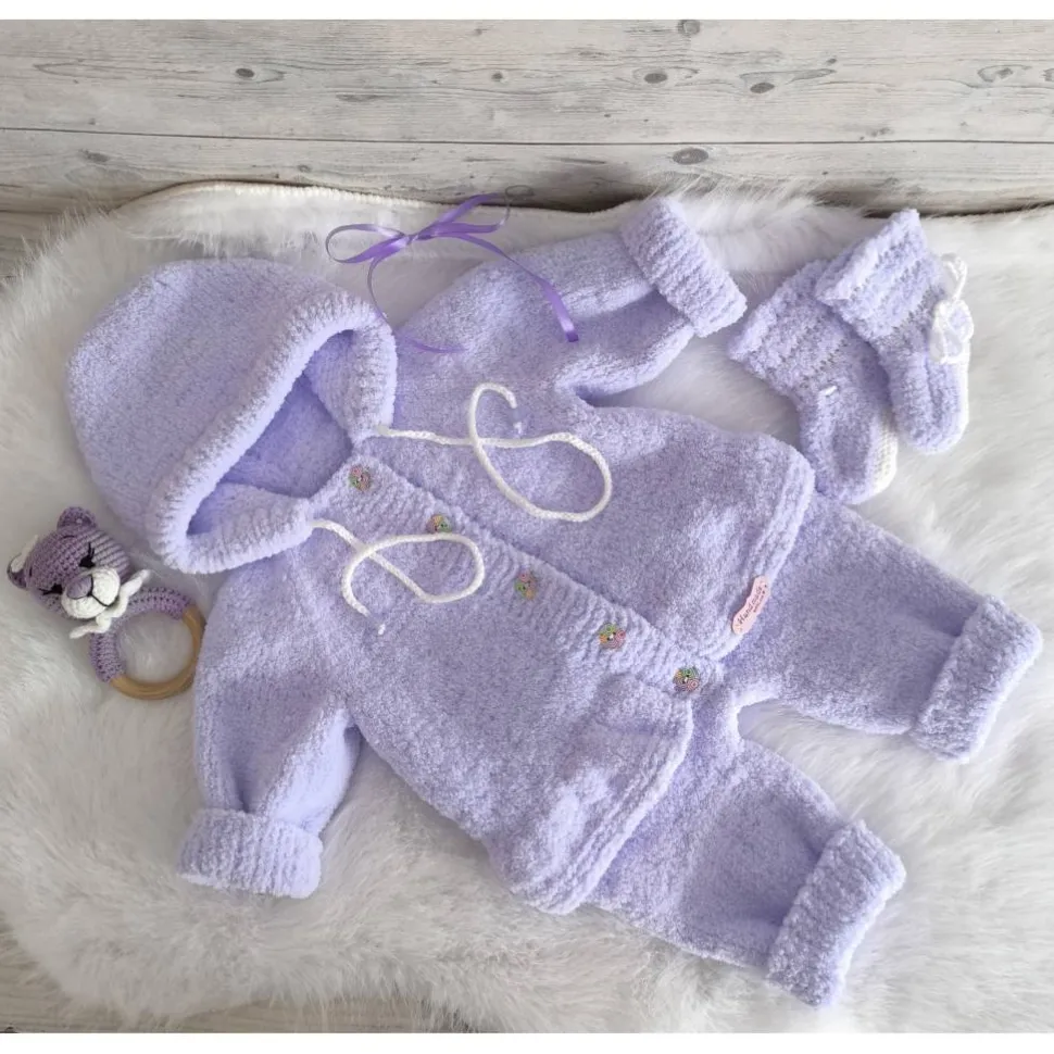 So weich wie eine Umarmung von Mama… Dieses traumhafte Baby-Set in edlem Lavendelton verzaubert auf den ersten Blick und schenkt deinem Baby pure Geborgenheit. Mit viel Liebe von Hand gefertigt, ist jedes Detail darauf ausgelegt, deinem kleinen Wunder nur das Beste zu bieten.