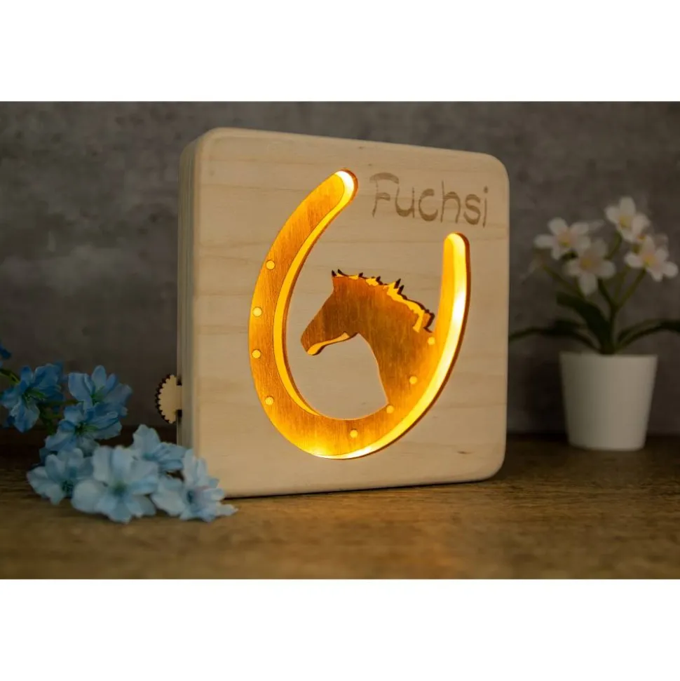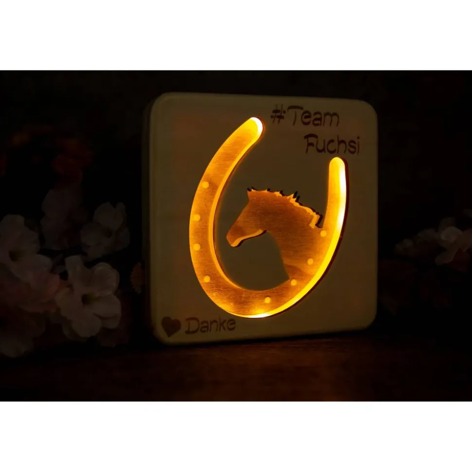 Hochwertige Lasergravur für Deine LED-Lampe mit Pferdemotiv