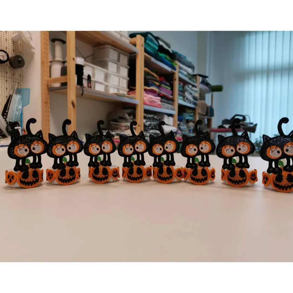 Lace Produkte werden mit einer Stickmaschine und Stickgarn auf wasserlöslichem Vlies gestickt. Nach dem Stickvorgang wird das Vlies ausgewaschen, sodass letztendlich nur die Stickerei übrig bleibt.