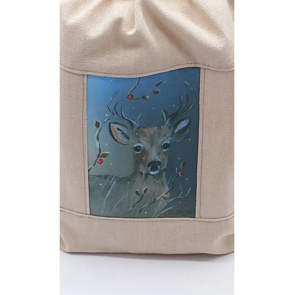 Geschenksäckchen, Brot- oder Stollensäckchen aus sandfarbenen Leinen.
