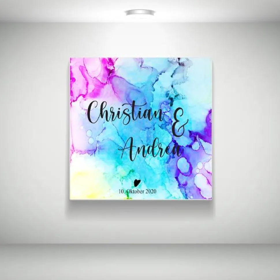 Ein ganz persönliches Geschenk zur Hochzeit oder zum Geburtstag mit den eigenen Daten. Du kannst Dir das Dessin, die Farben und den Hintergrund aussuchen.