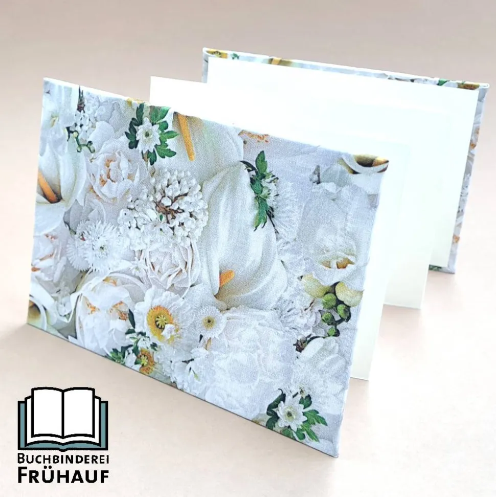 Überzogen ist der Leporello mit einem wunderschönen Baumwollstoff mit Hochzeitsblumen.