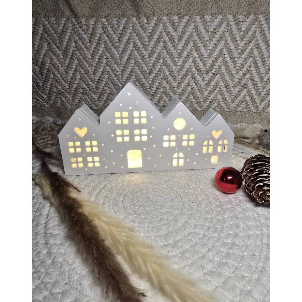 Das Lichterhaus misst 19 cm in der Länge, 10 cm in der Höhe und 2,5 cm in der Breite. Im Lieferumfang ist eine batteriebetriebene LED-Lichterkette (ohne Batterien) enthalten – einschalten und wohlfühlen!