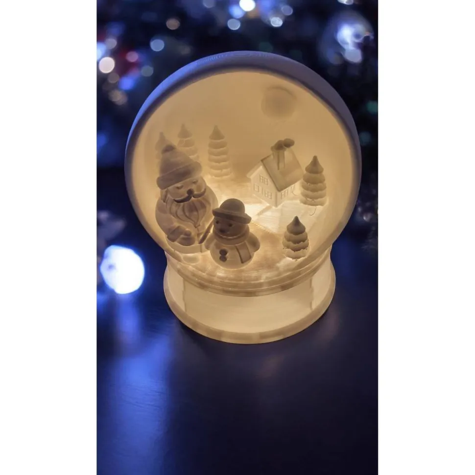 Lichterzauber im Winterwald: Exklusive 3D-gedruckte Schneekugel-Dekoration aus PLA – Nikolaus & Schneemann
