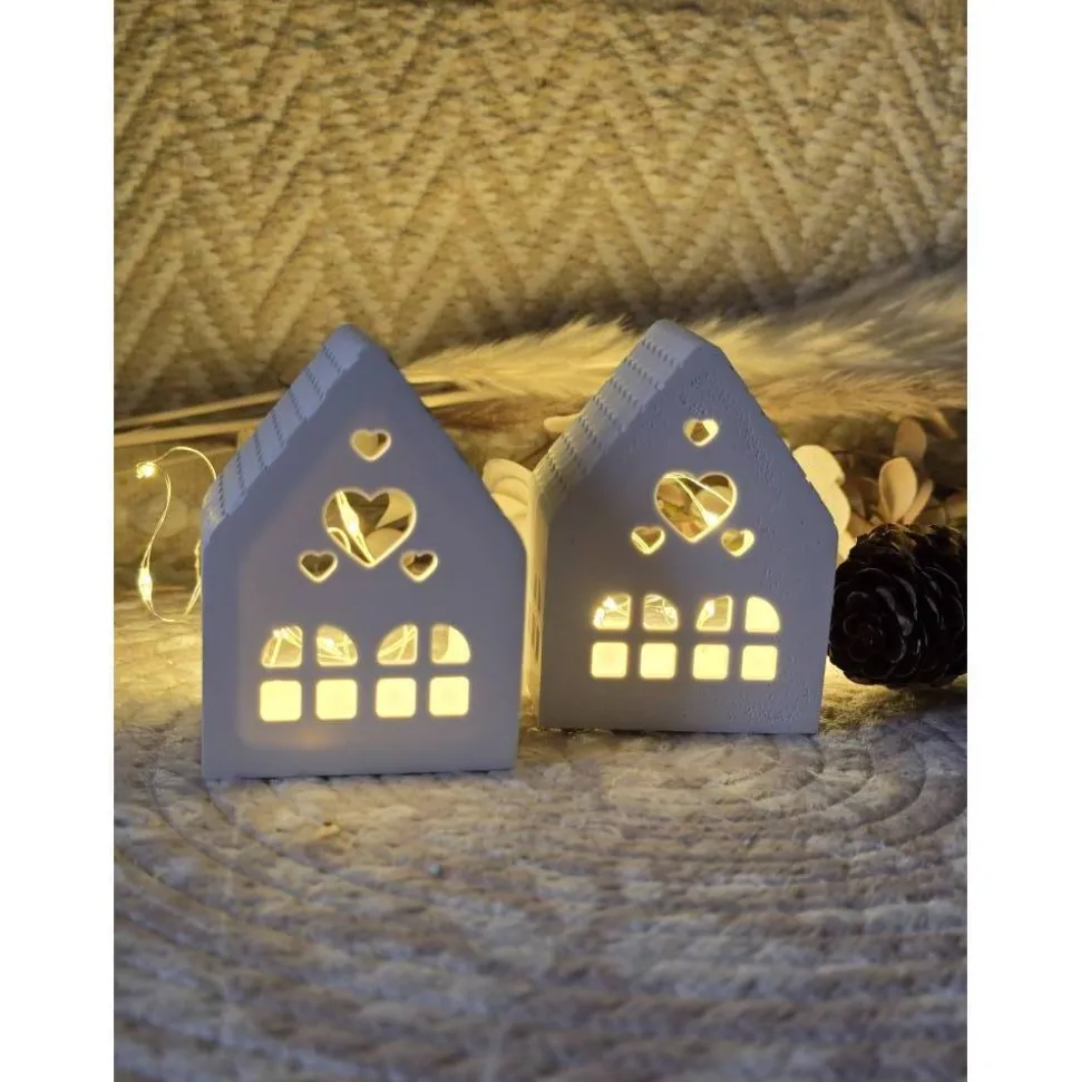 Bringe Gemütlichkeit in dein Zuhause mit liebevoll gestalteten Raysin Lichthäusern in matt-weiß. Diese dekorativen Häuschen sorgen mit filigranen Fenstern und Herz-Aussparungen für ein warmes, stimmungsvolles Lichtspiel und setzen charmante Akzente auf Sideboard, Regal, Tisch oder Fensterbank.