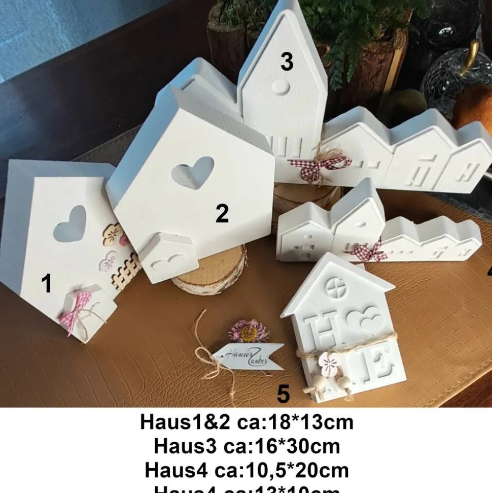 - Haus1: Klassisches, hohes Design mit Holzfragmenten ca.: 18*13cm