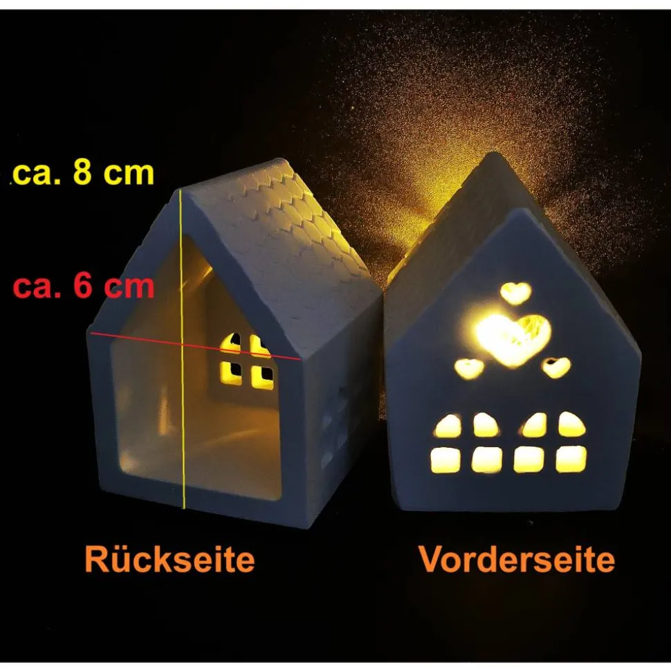 Die Keramikhäuser sind in verschiedenen Größen und als Windlicht oder LIchterhaus erhältlich und bieten vielseitige Gestaltungsmöglichkeiten.