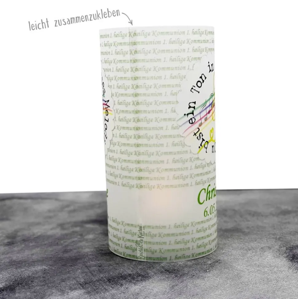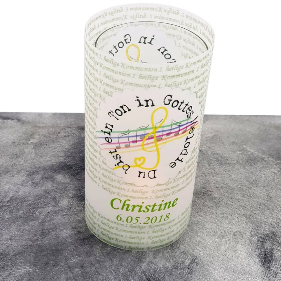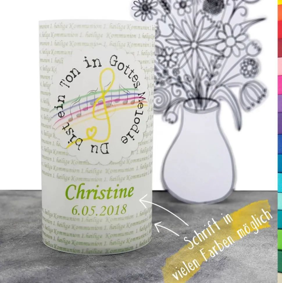 Gestalte deine individuelle Lichthülle zur Kommunion: Diese hochwertige Lichthülle aus Transparentpapier ist das perfekte Dekoelement für das Motto „Du bist ein Ton in Gottes Melodie“.