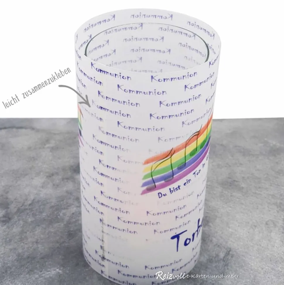 Gestalte deine Kommunionfeier mit einer einzigartigen Lichthülle aus Transparentpapier zum Thema „Du bist ein Ton in Gottes Melodie“!