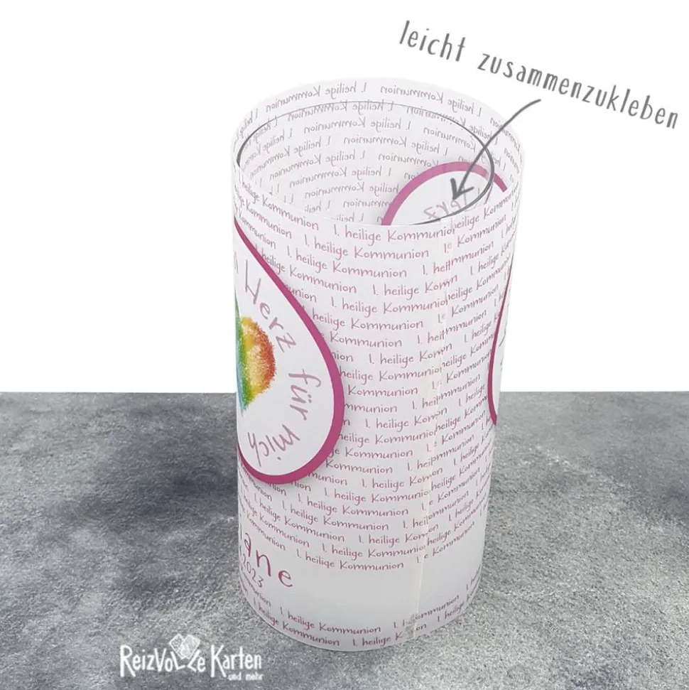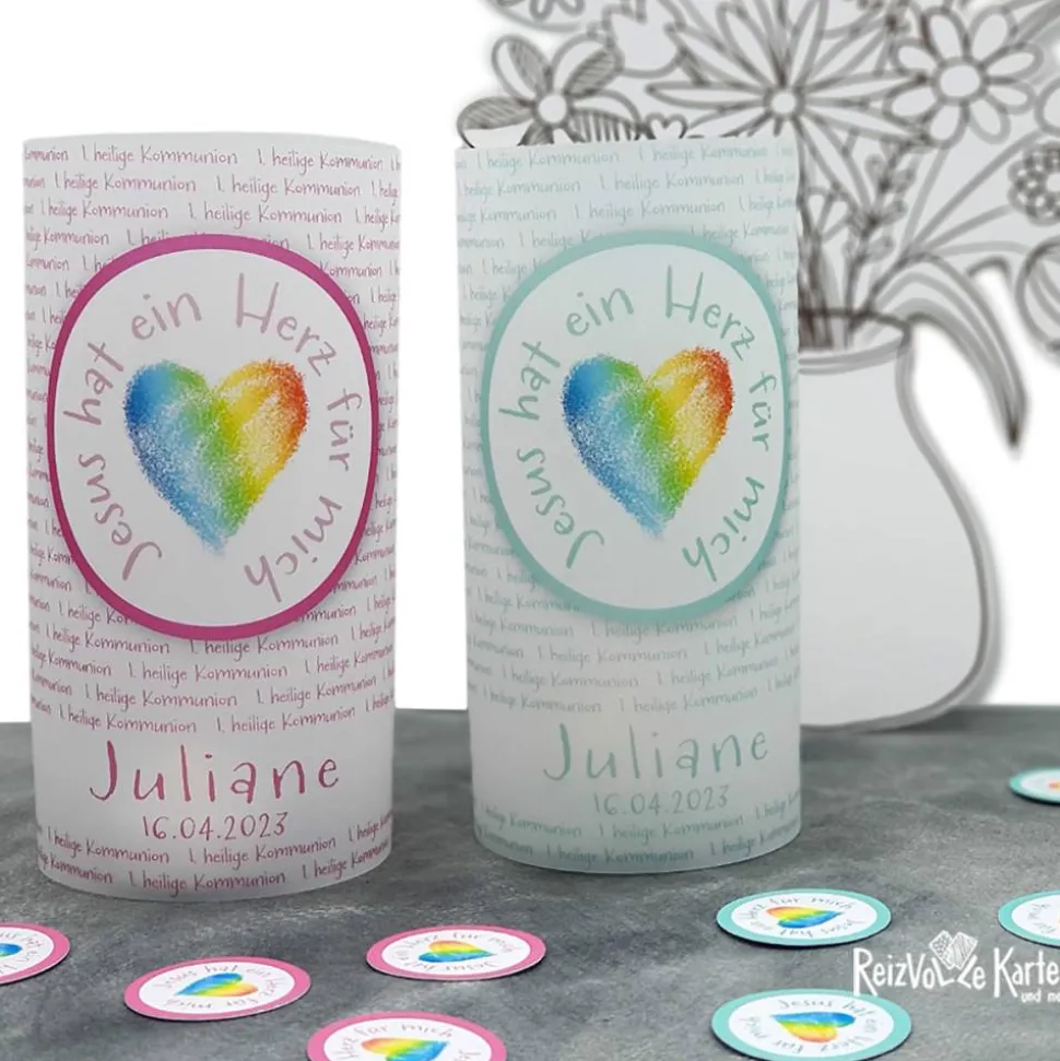 Entdecke die einzigartige Lichthülle zur Kommunion – Jesus hat ein Herz für mich als besondere Tischdekoration.
