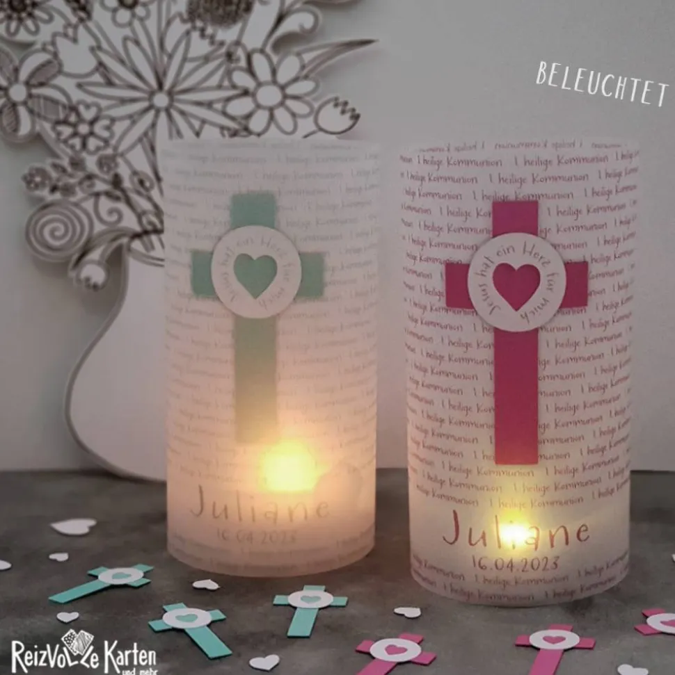 Gestalte deine Kommunionfeier einzigartig mit der liebevoll designten Lichthülle aus Transparentpapier zum Zusammenkleben.