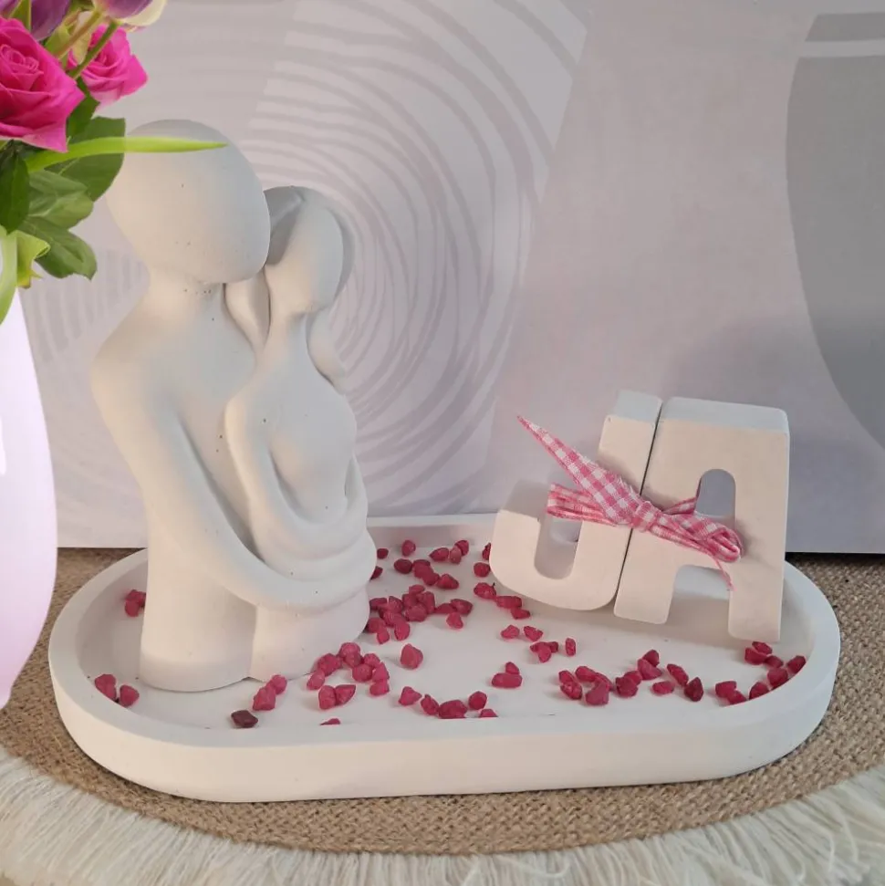 Das 3-teilige Geschenkset ist eine wundervolle Geschenkidee für Paare. Ob als Mitbringsel für das Brautpaar zur Hochzeit, oder als Geschenk für den Partner. Alles zusammen ein schöner Blickfang im Regal oder auf dem Sideboard. Eine handgefertigte Dekoration mit skandinavischem Flair hergestellt aus weißer Reliefgießmasse.