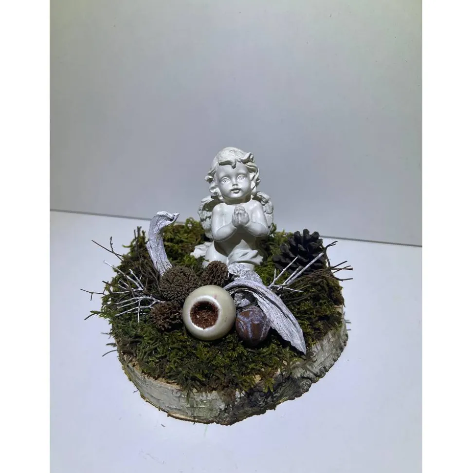 Es besteht aus einem Engel, getrockneten Moos und weiteren Naturprodukten.