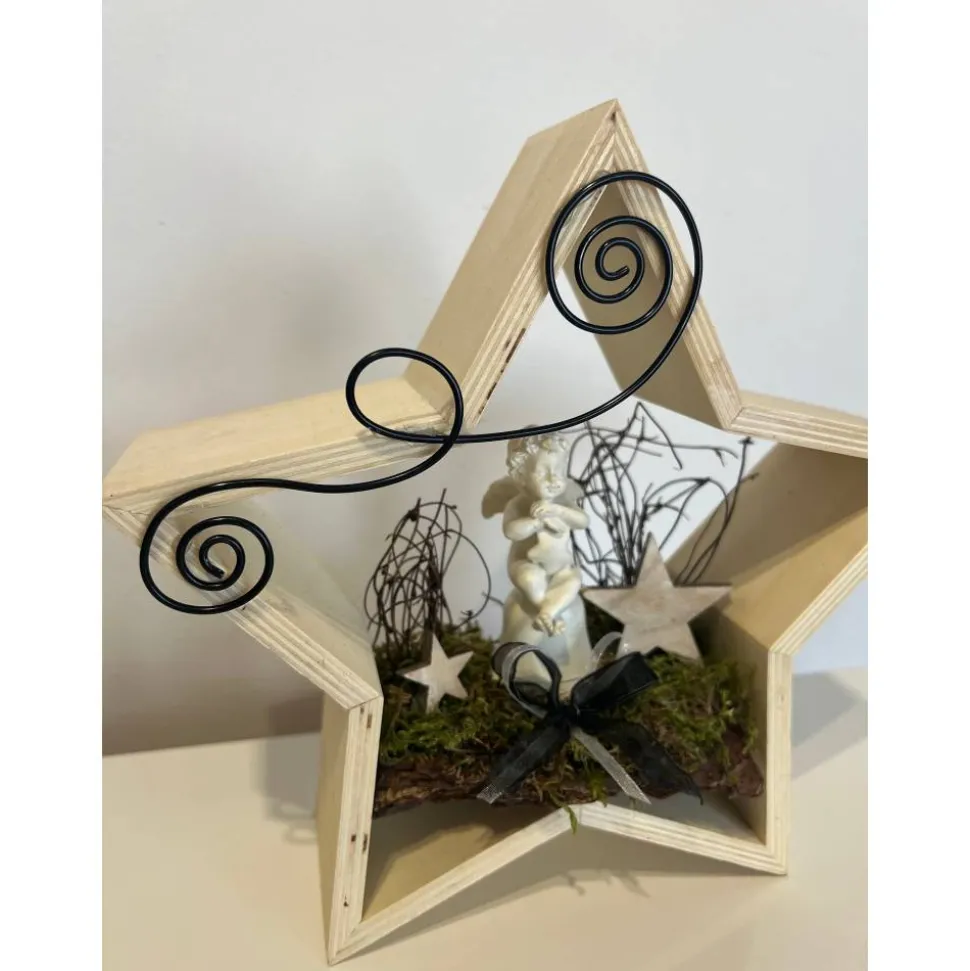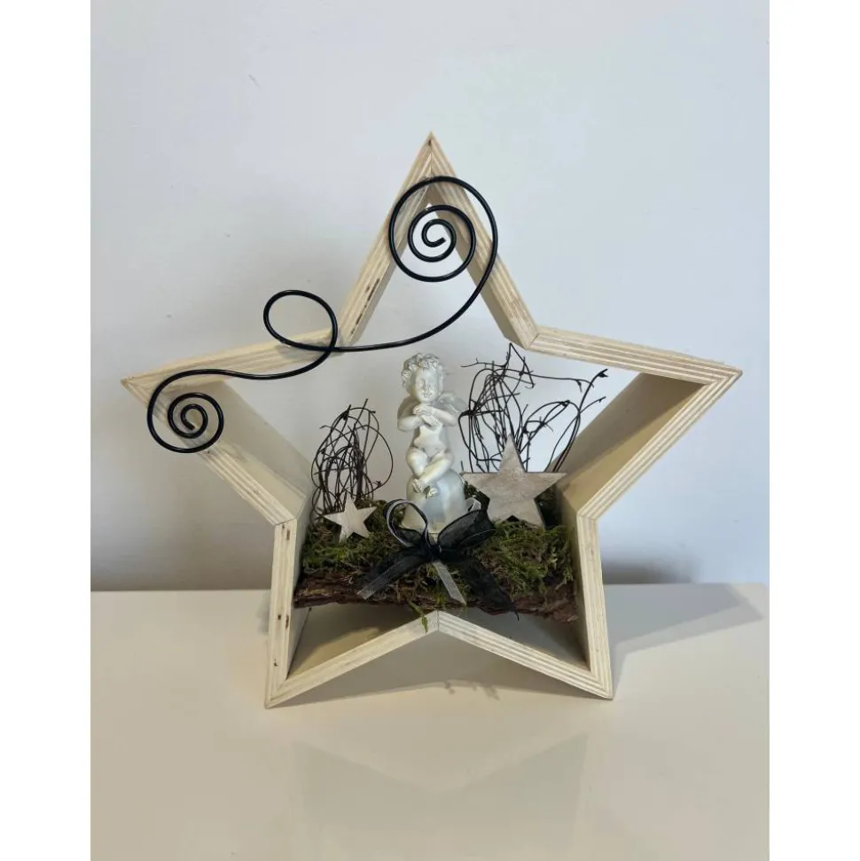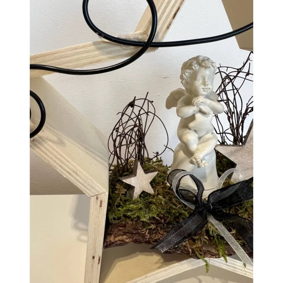 Es besteht aus einem Engel, Baumrinde getrockneten Moos und weiteren Naturprodukten.