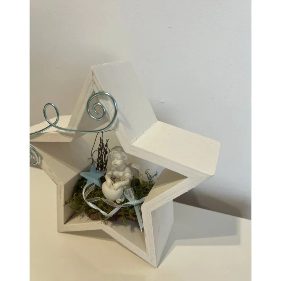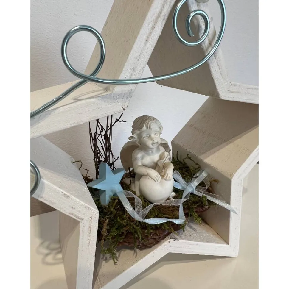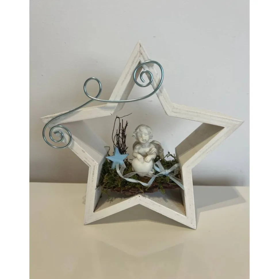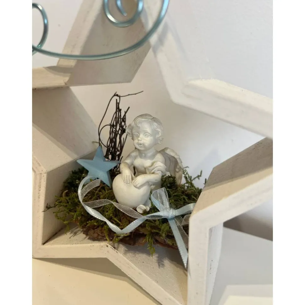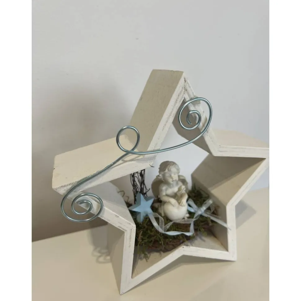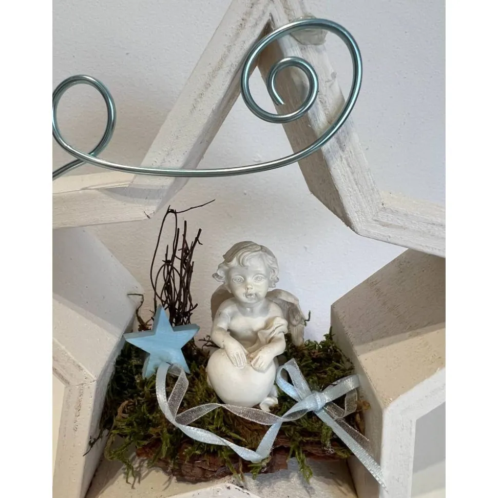 Es besteht aus einem Engel, Baumrinde getrockneten Moos und weiteren Naturprodukten.