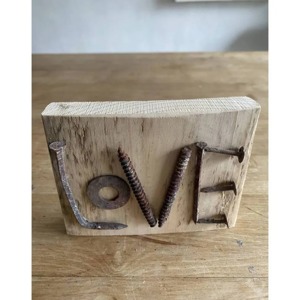 Dekoratives kleines Holzschild mit einer Botschaft: LOVE. Schönes Mitbringsel für Verliebte, Gastgeschenk für Hochzeiten, Tischdeko für Lieblingsmenschen.