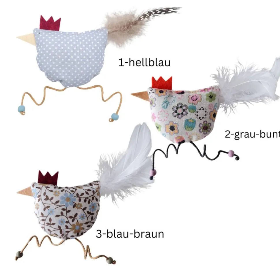 Eine Option ist das Set: es besteht aus 5 Hühner. Wenn du mir zur Bestellung deine Farbwünsche nennst werde ich die Hühner so schicken wie du es schreibst. Wenn keine Info dabei ist schicke ich dir ein schönes farbliches Set.