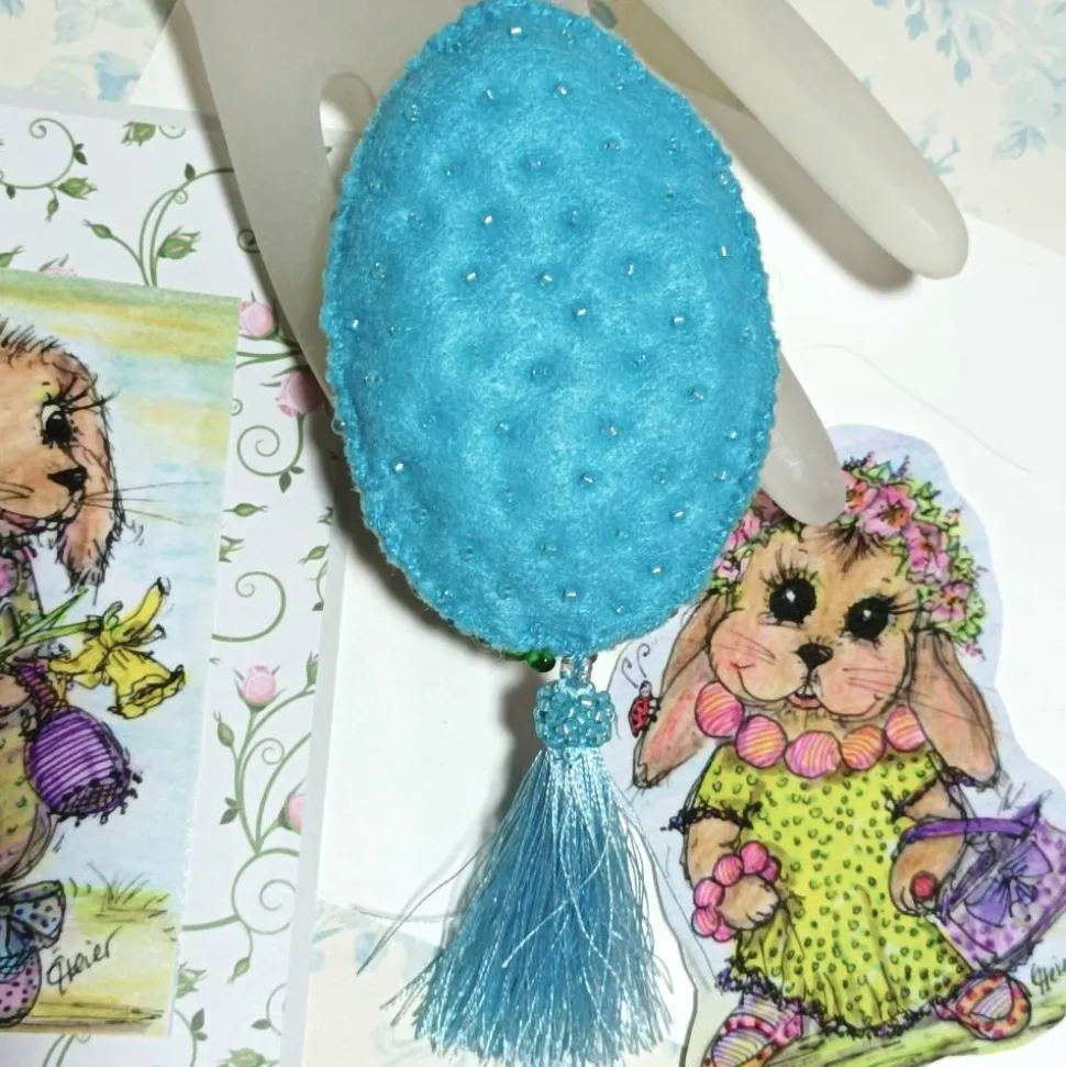 Maße: Höhe ca. 9 cm, Breite ca. 6 cm, Stärke ca. 2 cm durch Füllung & Stickerei. Gesamtlänge mit Satinband ca. 19 cm, Quaste ca. 5 cm. Das abgebildete Osterei in Blau mit üppiger, perlenverzierter Quaste ist genau das Einzelstück, das Du erhältst.