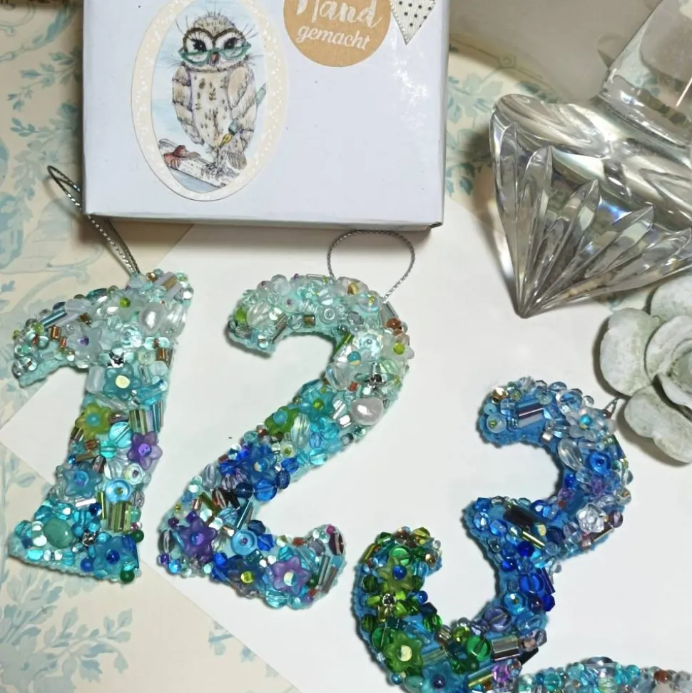 Innen ist das Ei gefüllt, fest und dennoch angenehm weich gepolstert. Die Rückseite ist mit perlenbestickten Polka Dots gestaltet, die im Licht edel funkeln. Jedes Stück ist ein echtes Unikat und eignet sich hervorragend als personalisierte Geschenkidee – ergänze handbestickte Buchstaben oder Zahlen Ornamente zu dem Ei und gestalte deine ganz persönliche Wohndeko.