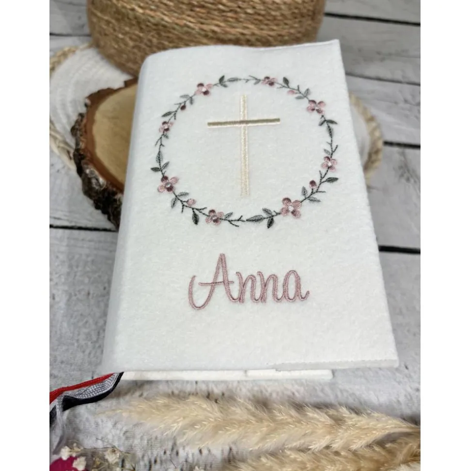 Mädchen Gotteslobhülle Blütenkranz Gebetbuchhülle Blumenkranz Blumen Kreuz aus Filz personalisiert