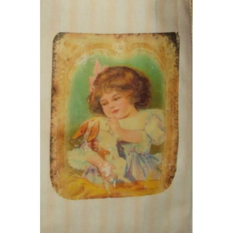 Fester Baumwollstoff,auch als Innenfutter,robuste Griffe aus Gurtband,nicht zu breit für kleine Hände,außen aufgenäht eine Applikation mit Bügelbild.