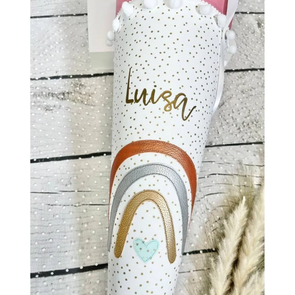 ♥♥ Schultüte aus Stoff „Regenbogen“ – Applikationen aus Kunstleder – gern mit goldenem Namen/Einschuldatum ♥♥