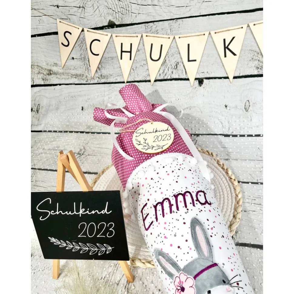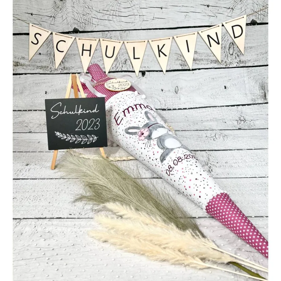 ☆ Schultüte aus Stoff mit dem flauschigem Bohohäschen „Marie“ – gern mit aufgesticktem Namen/Einschuldatum ☆