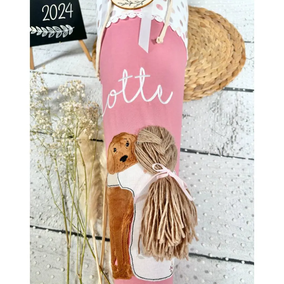 ☆ Schultüte aus Stoff Hund und Mädchen – gern mit aufgesticktem Namen/Einschuldatum ☆