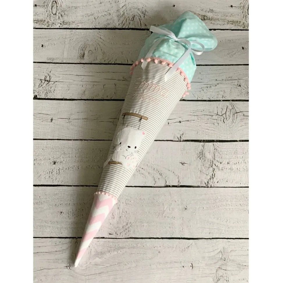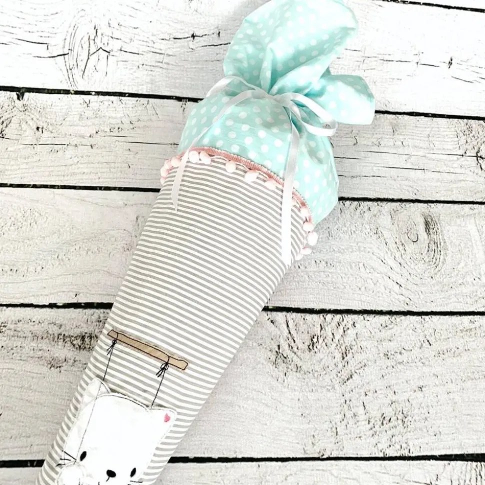 ♥♥ Schultüte aus Stoff mit flauschigem Kätzchen „Sissi“ – gern mit aufgesticktem Namen/Einschuldatum ♥♥