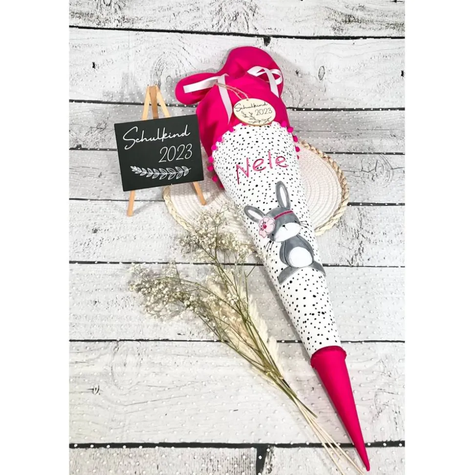 ♥♥ Schultüte aus Stoff mit dem flauschigem Bohohäschen „Marie“ – gern mit aufgesticktem Namen/Einschuldatum ♥♥