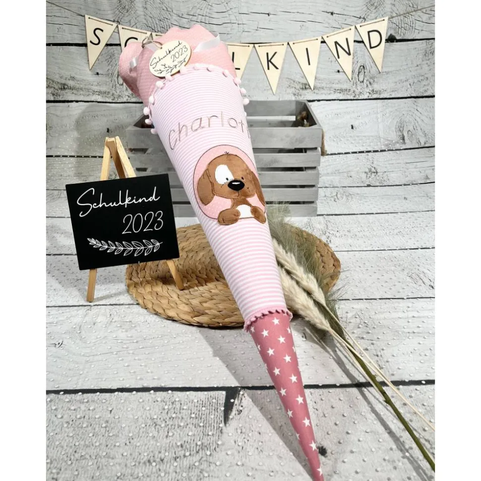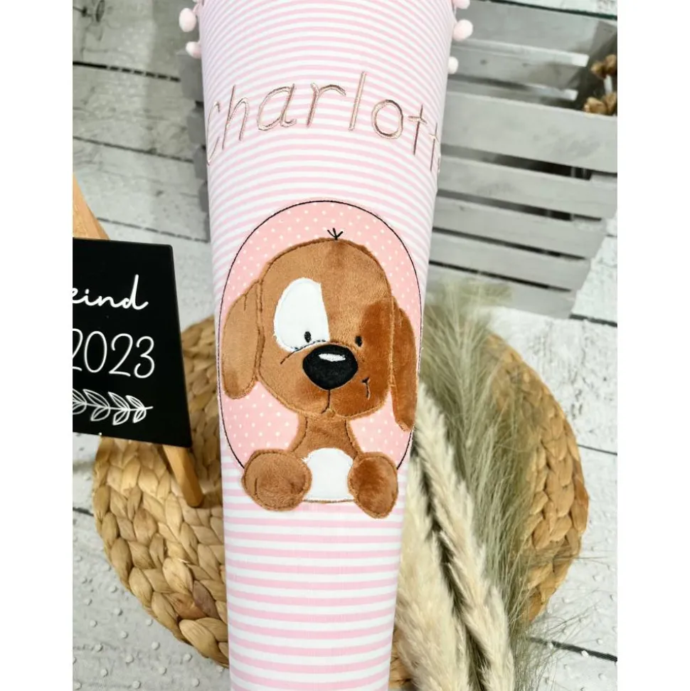 ♥♥ Schultüte aus Stoff mit flauschigem Hund „Fridolin“ – gern mit aufgesticktem Namen ♥♥