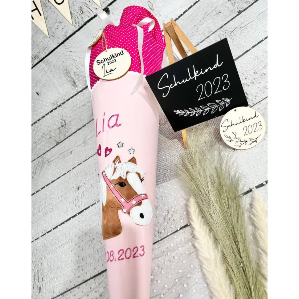 ♥♥ Schultüte aus Stoff mit flauschigem Pferd „Lulu“ – gern mit aufgesticktem Namen/Einschuldatum ♥♥