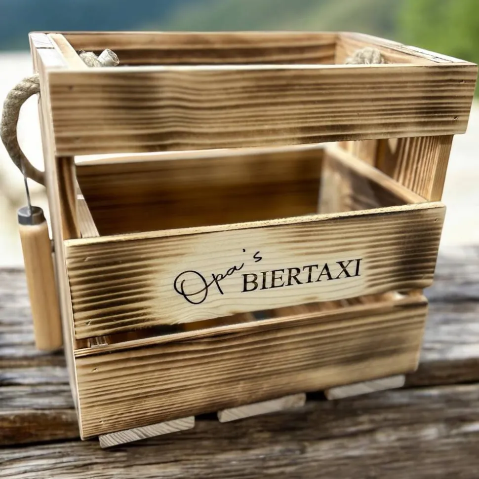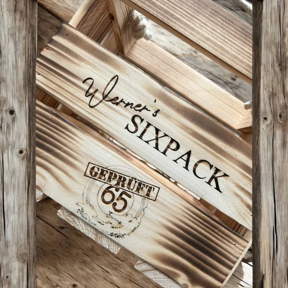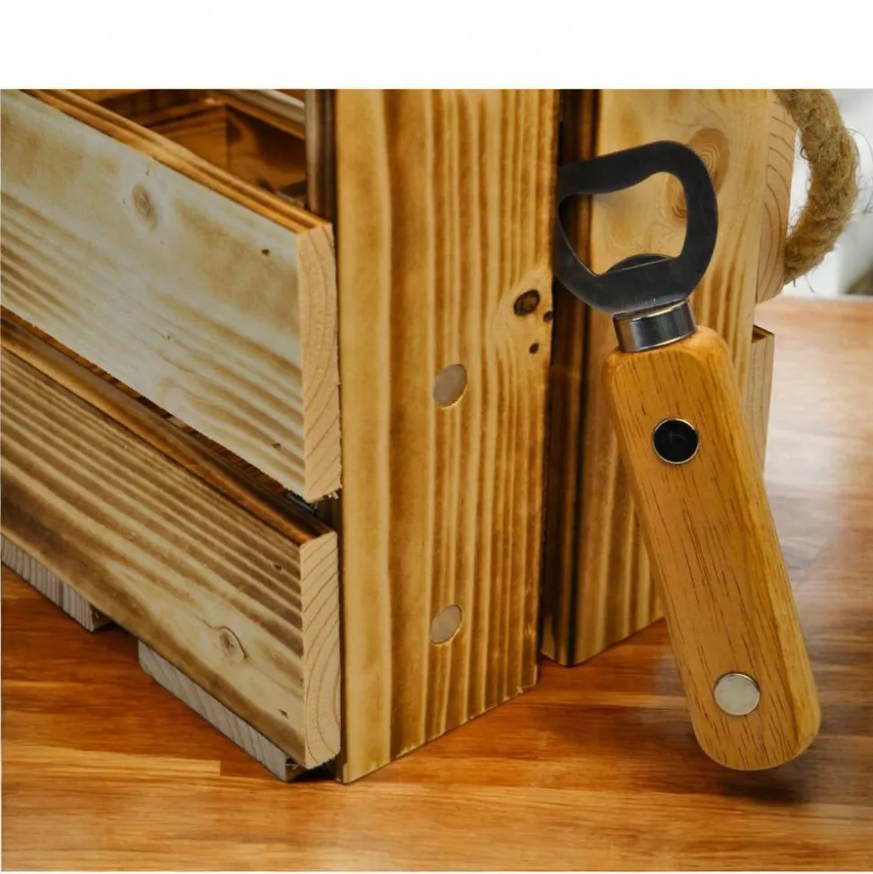 Diese handgefertigte „Männerhandtasche“ ist für 6x 0,33l Bierflaschen konstruiert und aus Konstruktionsvollholz KVH hergestellt. Die Männerhandtasche lässt sich durch das befestigte Seil tragen und ist immer eine große Hilfe. Der mitgelieferte Flaschenöffner ist mit zwei Magneten befestigt und immer griffbereit. Die Gravur „0,33er Schlüssel“ ist Standard und kann auf Wunsch geändert werden.