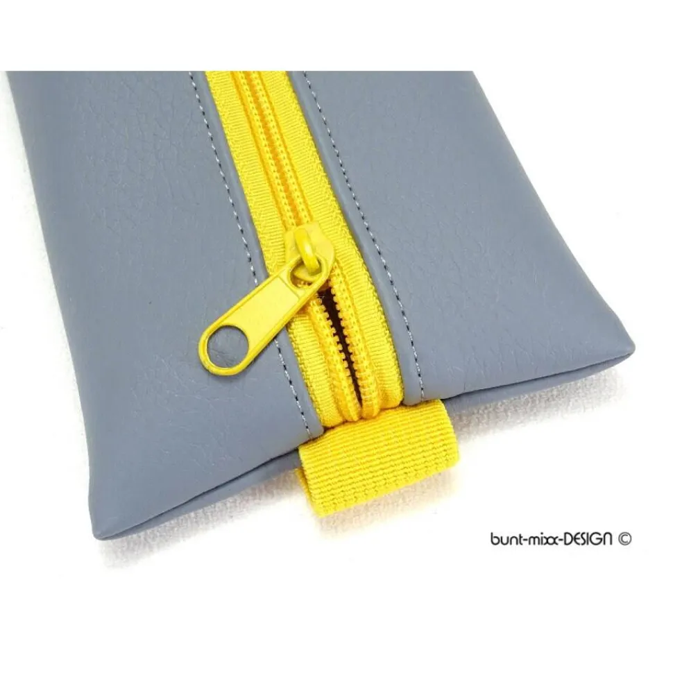 Reißverschluß und Gummiband sind farblich aufeinander abgestimmt: gelb, sonnengelb.