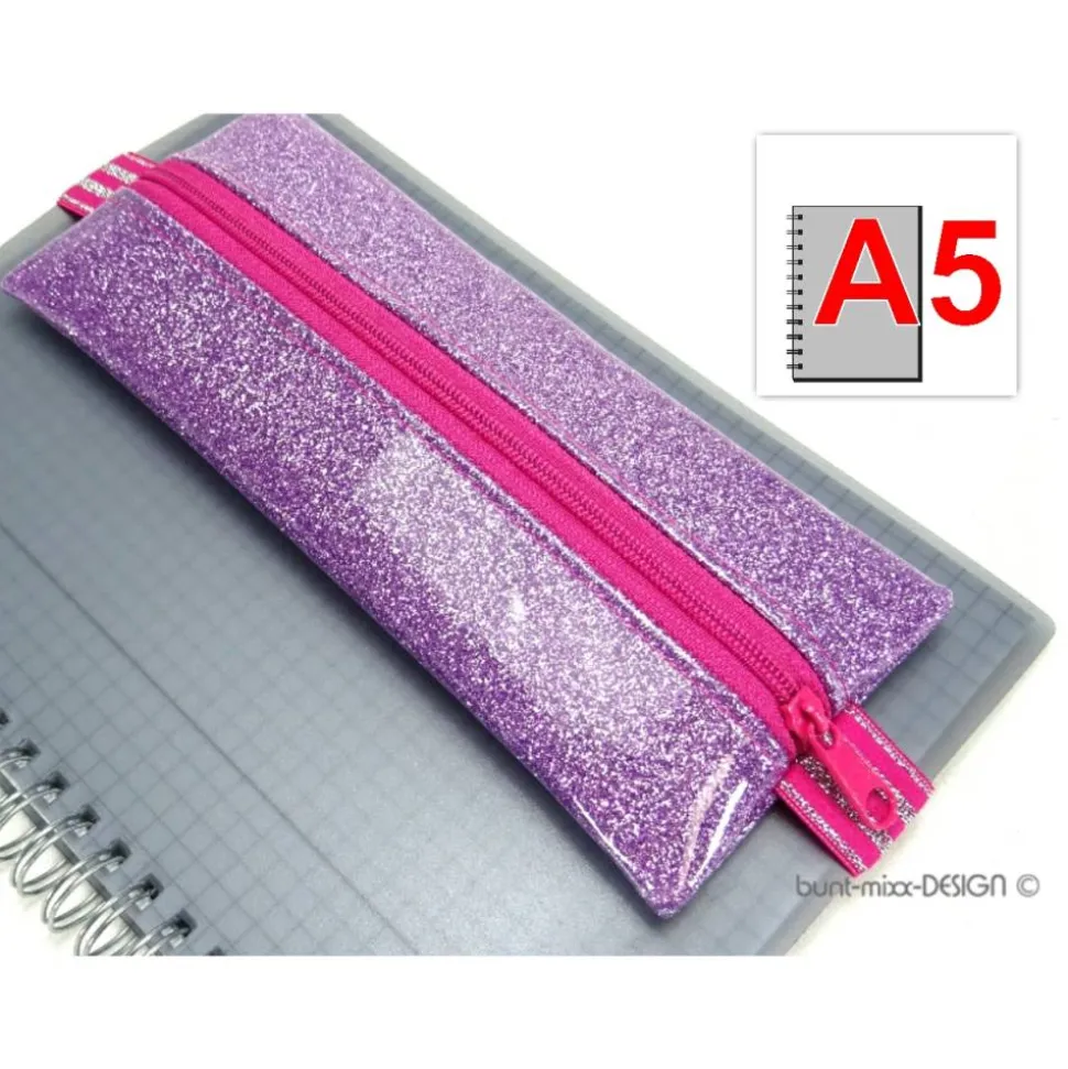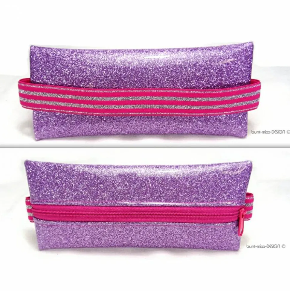 Reißverschluß und Gummiband sind farblich aufeinander abgestimmt in pink mit silber-Glitzer Streifen.