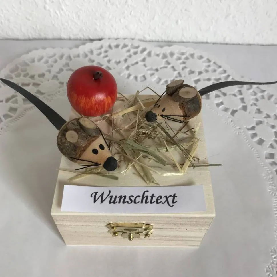 – Schild „Wunschtext“ Gerne kann z. B. Ein paar Mäuse für Dich, Mäuse zum Verbraten, Zum Geburtstag, Herzlichen Glückwunsch etc. aufgedruckt werden. Geben Sie Ihren Wunschtext bitte einfach im Bestellvorgang an. Auch eine direkte Kontaktaufnahme ist möglich.