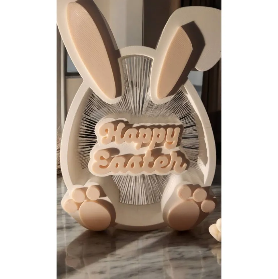 Suchst du nach einer Osterdekoration, die deine Gäste zum Staunen bringt? Unser schwebender „Happy Easter“ Aufsteller nutzt die faszinierende Kunst des 3D-Drucks, um einen magischen, fast schwerelosen Effekt zu erzeugen. Die Schrift scheint im Zentrum der Hasen-Silhouette zu schweben, gehalten von hauchdünnen, aber stabilen Strukturen. Die Maße sind 17 cm hoch, 12 cm breit und 4 cm tief.