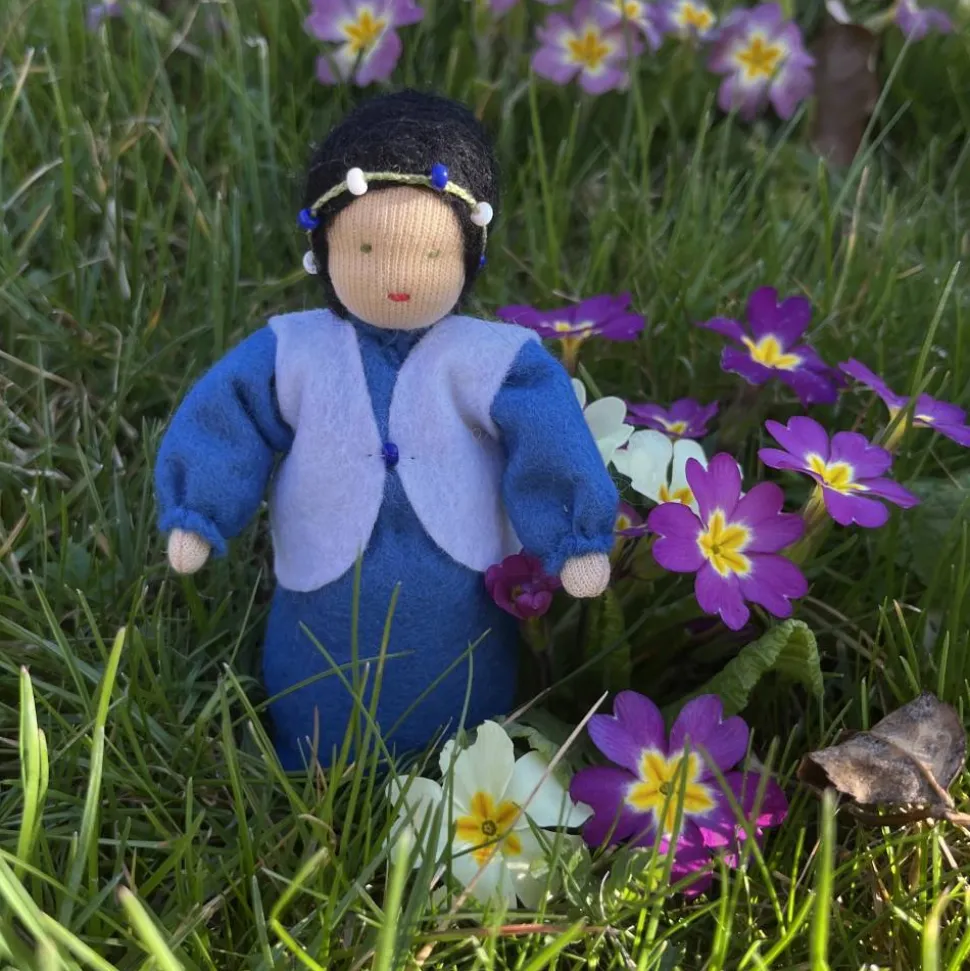 Das Püppchen ist unten geschlossen und für einen guten Stand unten mit feinem Dekokies und der Rest mit reiner Schurwolle gefüllt.