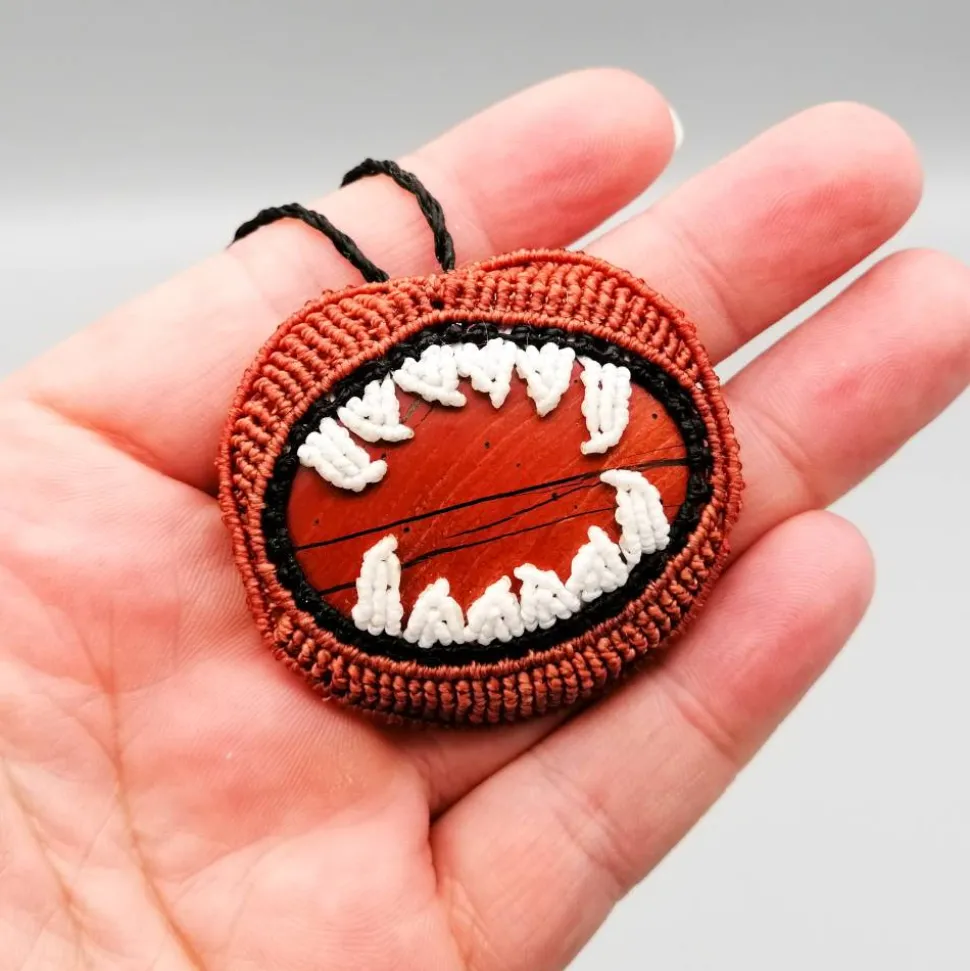 Dank des Schiebeknotens kann die Kette lang oder eng am Hals getragen werden.