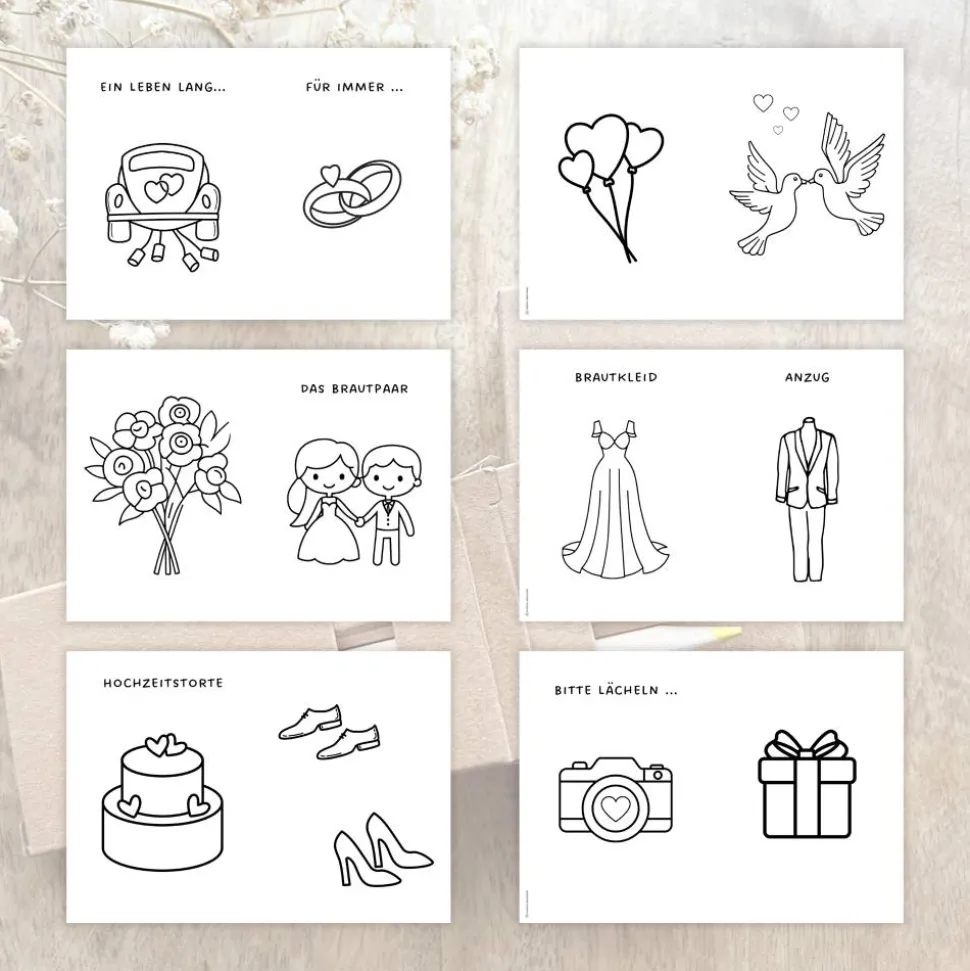 Ein tolles Malbuch passend im Hochzeitsdesign.