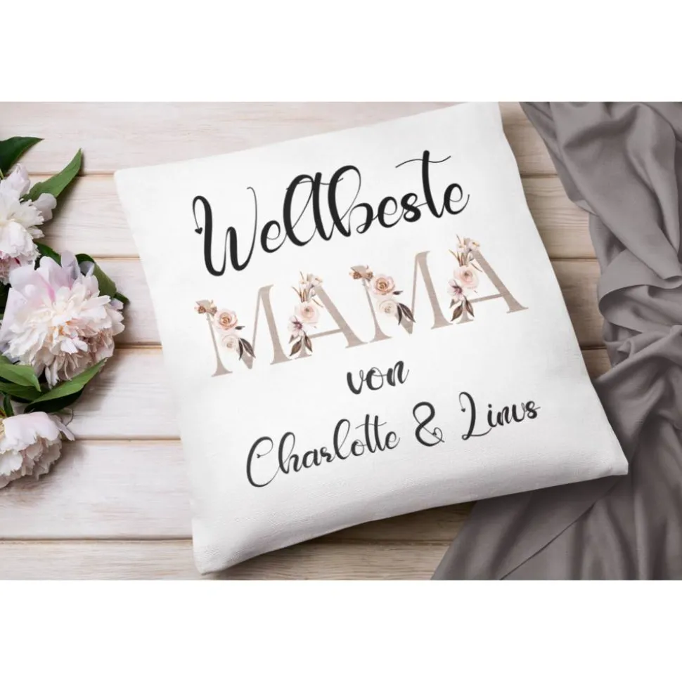 Ihr Mama Kissen mit Hübschen muttertags Motiv . Personalisieren Sie ihr eigenes Kissen mit Wunschnamen und erhalten somit ein Unikat an einem Namenskissen.